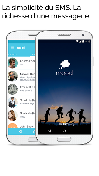 - Les messages entre utilisateurs Mood sont GRATUITS et ILLIMITES en wifi ou 3G